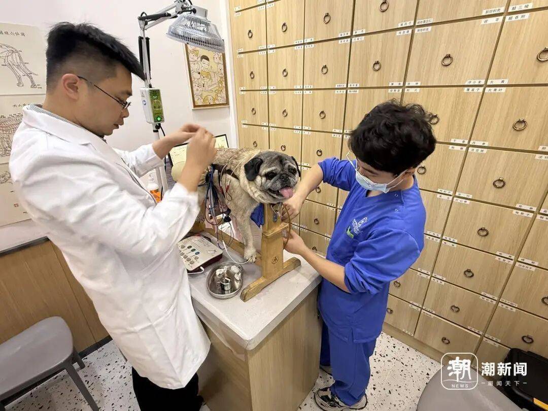 “宠物和人的穴位,大体上是相同的。”浙江农林大学现代宠物商学院创新导师、汪喵·太医堂创始人伍迎九介绍,中兽医和人医一样,看诊时要根据病例具体情况,实行“一宠一方”治疗。