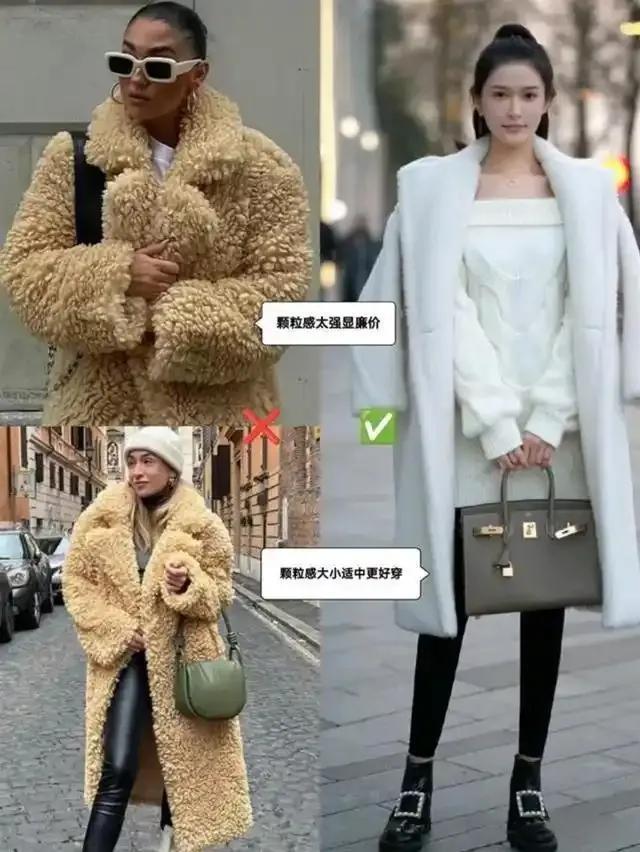我们穿衣打扮的时候,看到别人穿的很时髦,千万不要盲目跟风,特别像上面这种颗粒感非常强的外套,穿在身上其实并不时尚,普通人穿了会显得很廉价,除非颗粒稍微小一点,穿在身上可能还好驾驭一些。