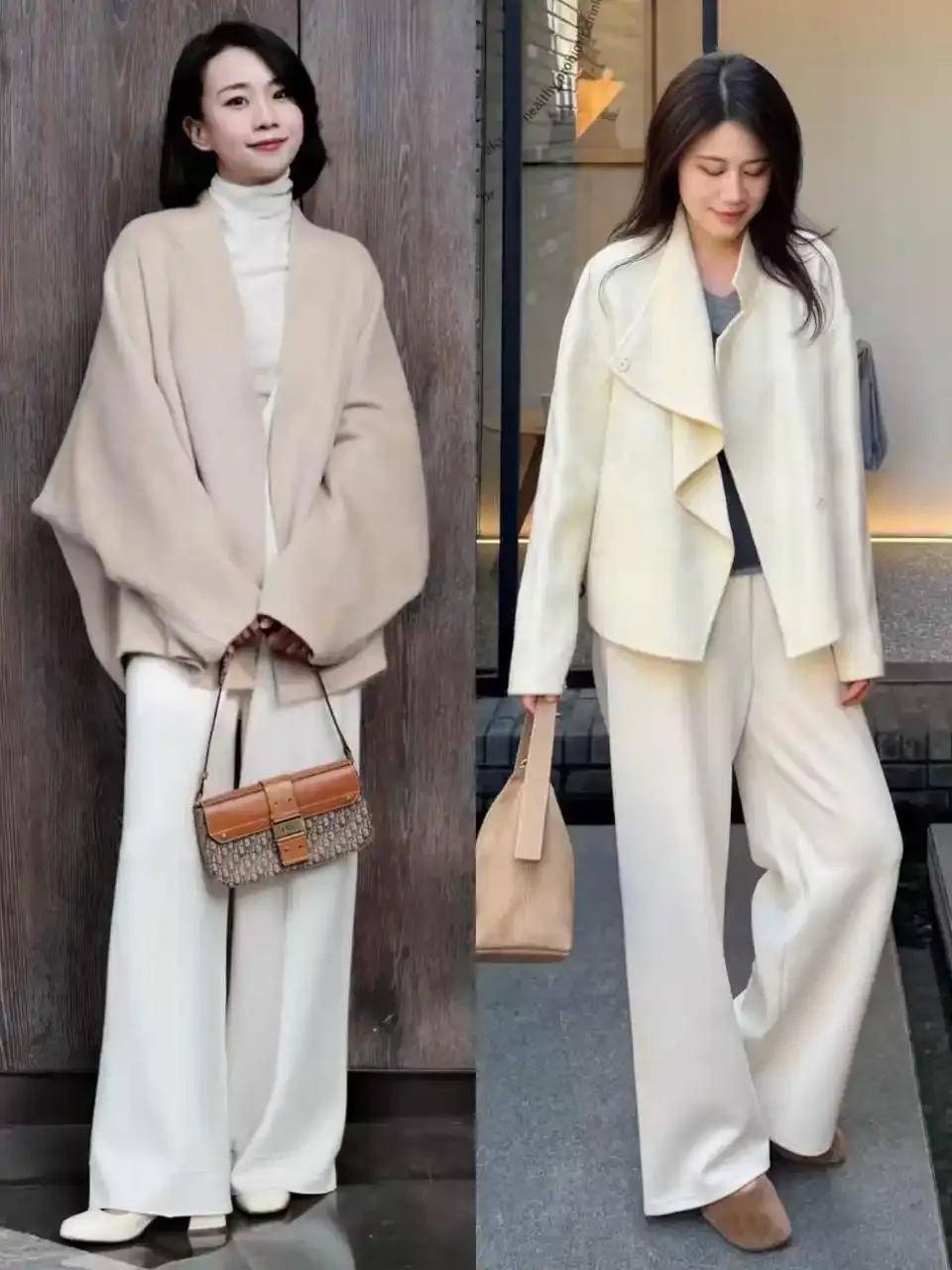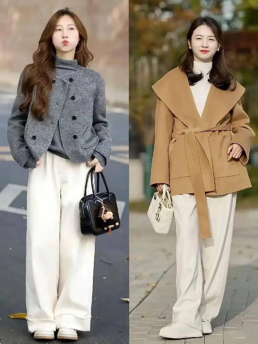 第一章节,冬天别穿运动裤,选择下面这 3 种裤子,更百搭时髦Tips①:白色阔腿裤 vs 运动裤