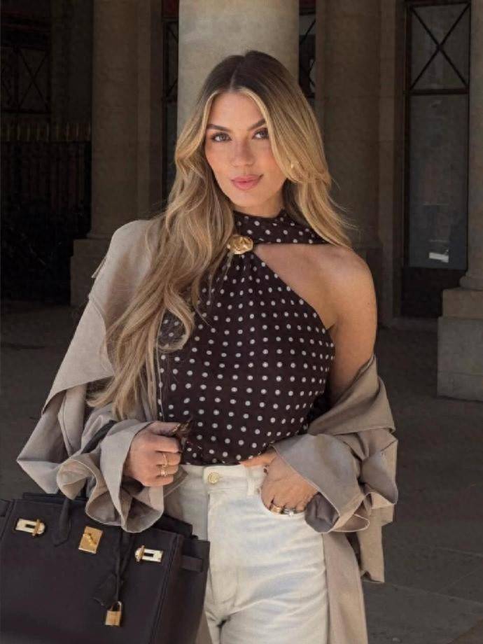 色彩搭配上,Paulinakurka 最擅长用低饱和色系打造和谐氛围。她很少堆砌鲜艳的颜色,而是偏爱燕麦色、奶茶棕、雾霾蓝、炭灰色这类温柔又沉稳的色调,偶尔用一件亮色配饰点缀,比如焦糖色的皮带、酒红色的腋下包,瞬间提升造型层次感。这种配色思路对黄皮超友好,既能弱化肤色缺点,又能营造出松弛不刻意的高级感,哪怕是基础款的 T 恤配牛仔裤,换一套低饱和色系,质感立刻翻倍。